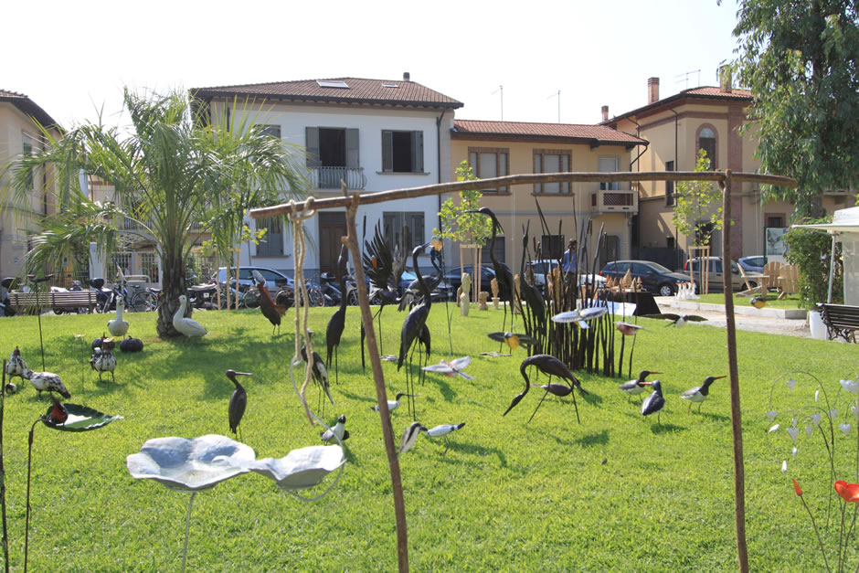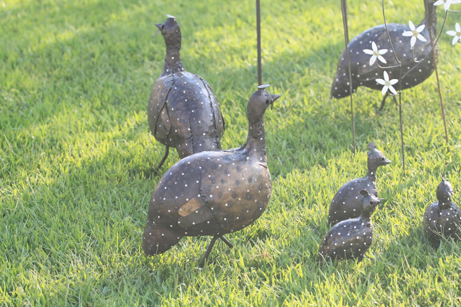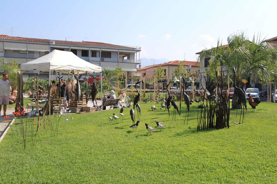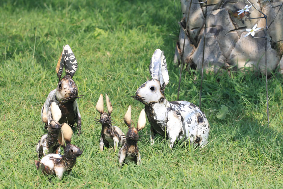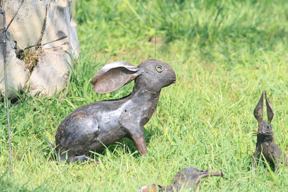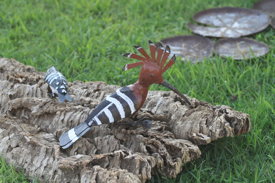Animali, uccelli e piante in ferro riciclato